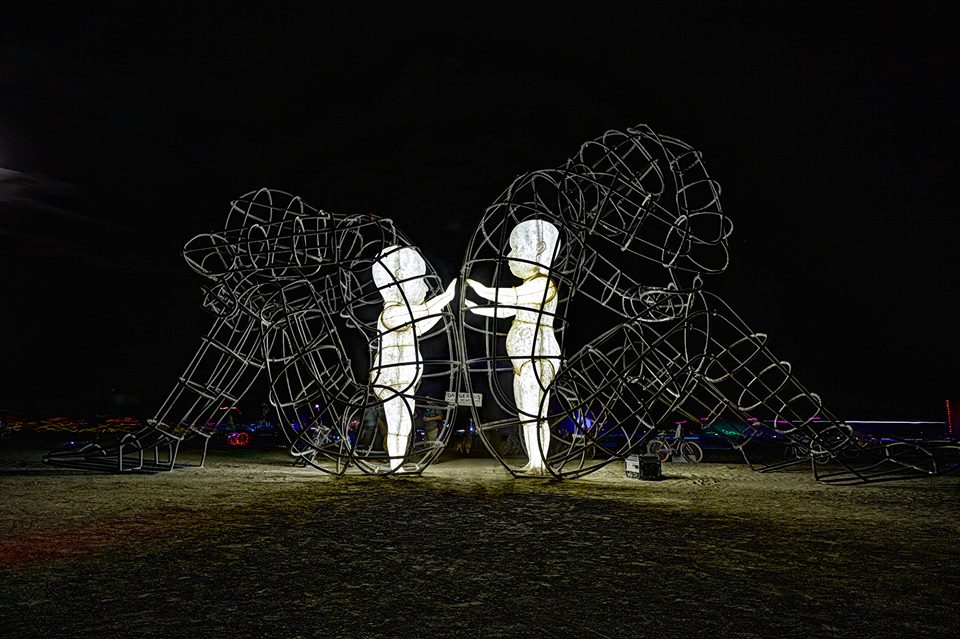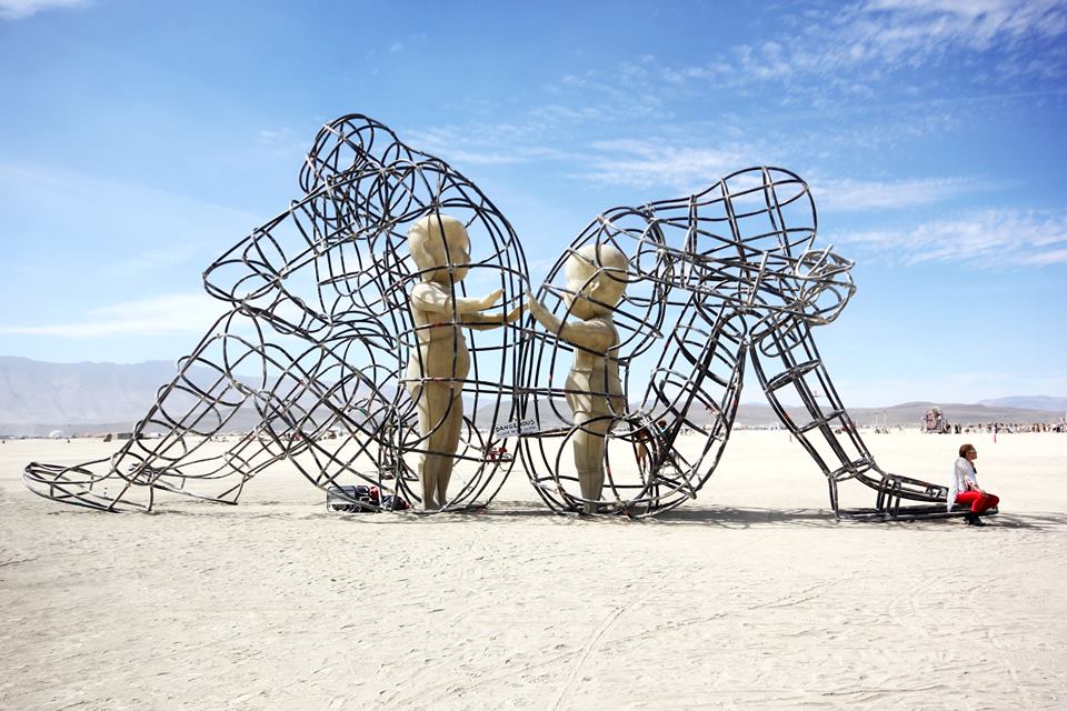 -Скульптура досі у штаті Невада, неподалік місця, де проводився фестиваль, на ранчо. Зараз вона законсервована. Місце встановлення я вибрав для того, щоб вона справді справила враження: адже все могло залишитися на рівні картинки в Інтернеті. Але природа людська така, що їй потрібен масштаб, і тоді ідею оцінять.Певною мірою ці постаті символізують мій особистий пошук взаємопорозуміння з дружиною. Є люди, які рідко кажуть "люблю", я з тих, хто робить це часто…