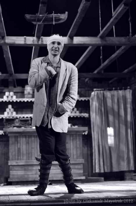 Актора, який грає каліку Біллі (грає внутрішню, а не зовнішню "рану" цього персонажа), я вперше побачив у місті Рівному в січні цього року в "Білій вороні" (у ролі Блазня-Диявола). Знайомство було освячене в антракті пам'ятним стусаном мені в спину (котроїсь із його місцевих шанувальниць): "Ну хоча б ви, як четверта влада в себе в столиці, що-небудь зробіть для нього! Ну, може, якесь звання... Він для нас - найкращий.... Найталановитіший!"