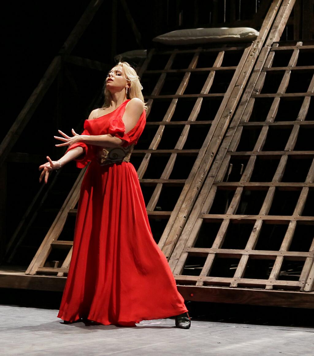 Старанна й дуже відповідальна в різних сценах юна актриса Дар'я Баріхашвілі. І, впевнений, від спектаклю до спектаклю вона ростиме. І ставка на неї багато в чому виправдана: ця дівчина з гарячою кавказькою кров'ю, блиск у її очах - як блиск кинджала в її ж руці. У ній таїться не тільки чуттєва голуба лірика (це на поверхні), у ній дрімає якась гірська вулканоподібна сила, що на п'ятнадцятому спектаклі, сподіваюся, прокинеться, вибухне, і спектакль отримає дуже важливий пазл, якого йому наразі бракує.