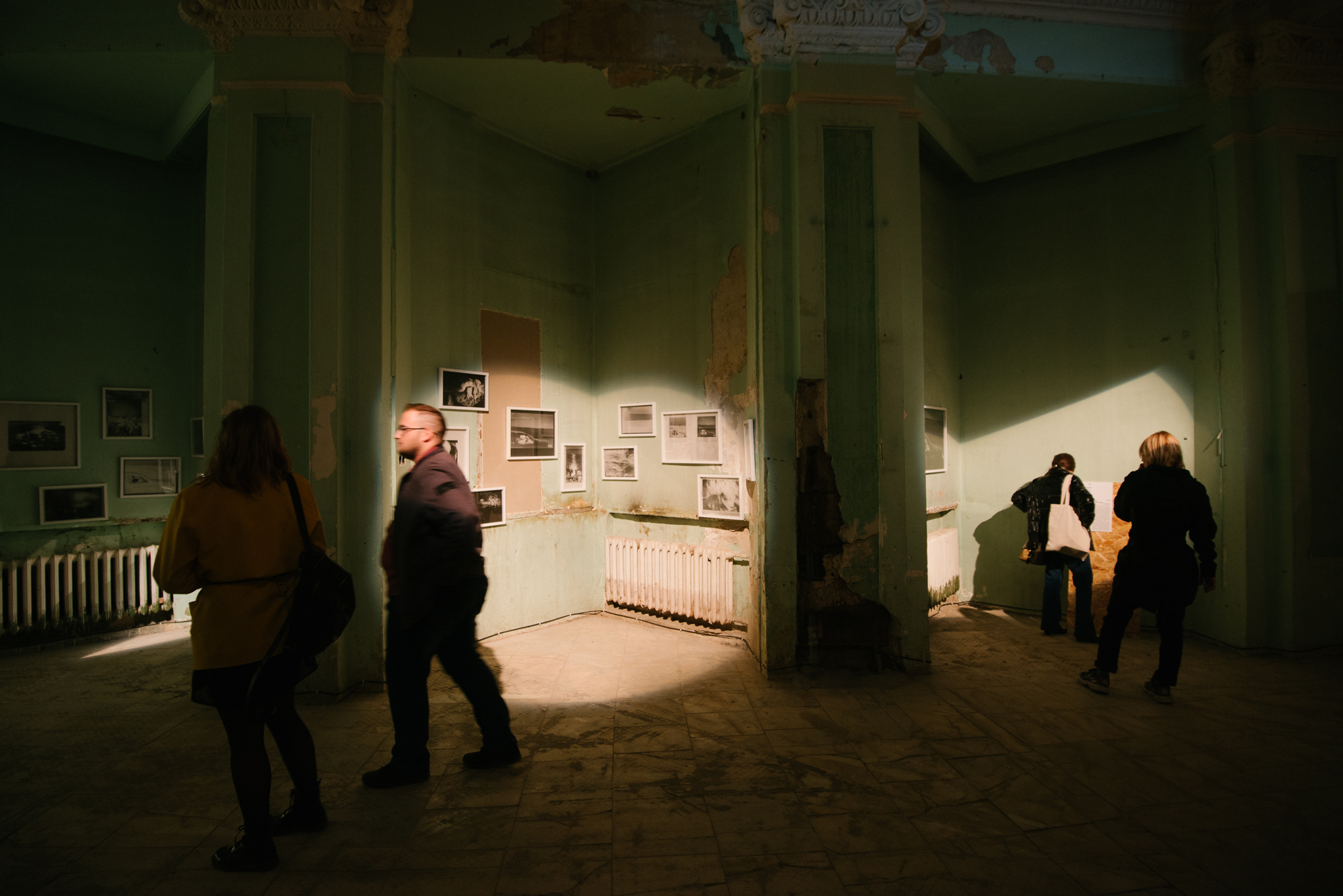 Тут треба обов'язково сказати про сам готель "Харків", який вмістив основну експозицію. У центрі Києва теж є безліч "історичних" будівель, занедбаних і готових розсипатися на частини. Найвідомішою залишається, мабуть, Центральний гастроном на Хрещатику. Він навіть горів, але попелище прикрили тканиною, - споруда так і стоїть, продовжуючи руйнуватися.