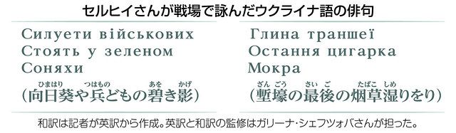 Речник 28-ї окремої механізованої бригади імені Лицарів Зимового Походу Збройних сил України Сергій Белінський захоплюється написанням рідною мовою японських трирядкових неримованих віршів "хайку", розповідаючи в них про бойові дії з російськими окупантами. Два ліричні твори опублікувала мовою оригінала та японською газета Chunichi Shimbun, отримавши тексти від бійця з бахмутського напрямку електронною поштою.