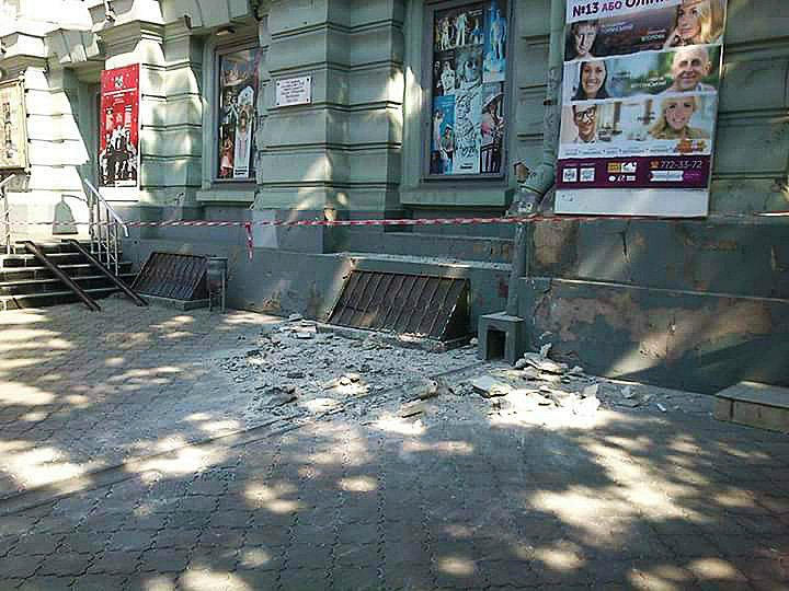 Добре, що цей фасад хоча б "законсервували", не дали остаточно зруйнуватися. Але театр потребує не тільки оновлення фасаду, треба впорядкувати залу для глядачів. Ви ж бачили цю стелю!