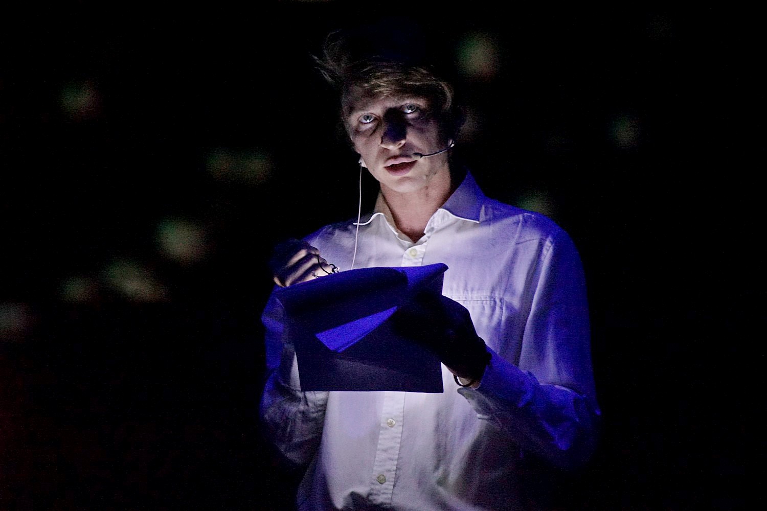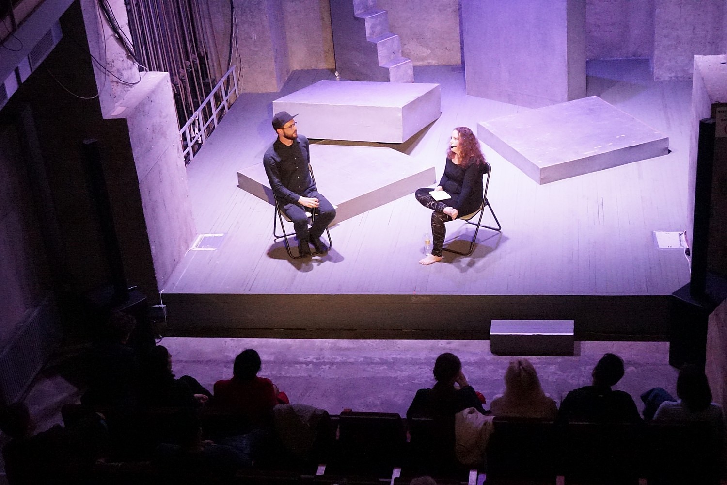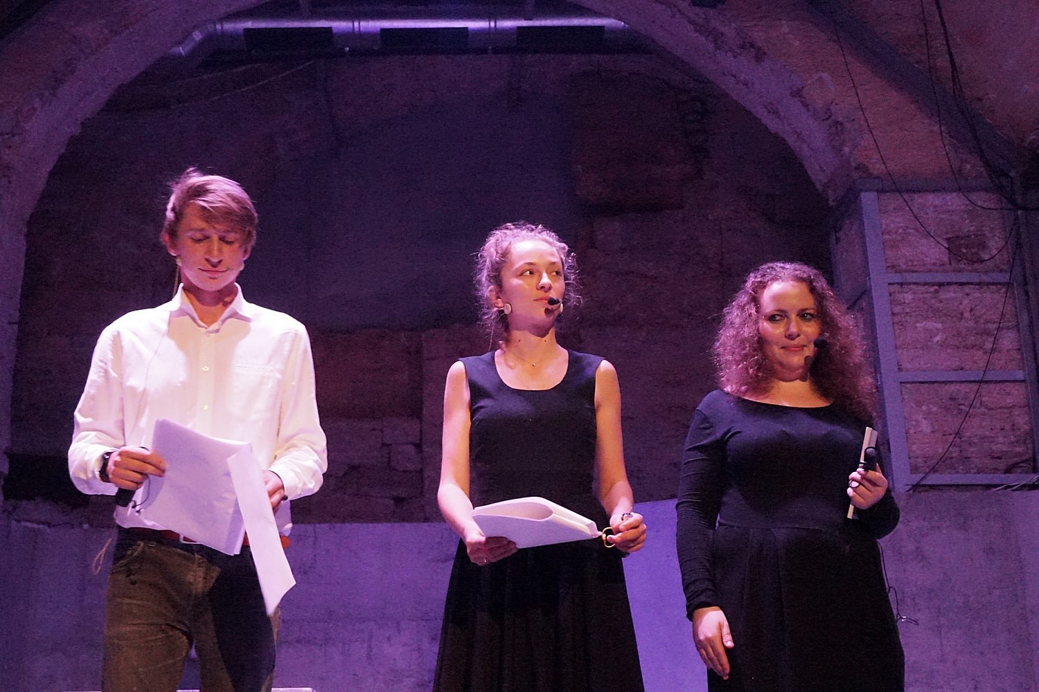 Фрагмент імпровізованого спектаклю, строго кажучи, читання частини п'єси Марини Скалової (Швейцарія) "Падіння комет і космонавтів" гостям фестивалю показали в театральному просторі "ТЕО". Це сутінкове підвальне приміщення створило адекватне середовище саме для такої літератури. Текст читали професійні артисти - Юлія Яблецька і Роман Гусєв.