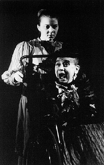 І тільки скажений блиск у її давно виплаканих очах, а ще - пронизливий, як злобний вітер, її ж старечий голос видавали в цій бабці колишню пристрасть і нестримність - її шаленство. Коли вона заставала Генрі біля свого секретера, а його рука вже тяглася до фатальних листів, то сцену й зал буквально підривав її ж крик, який був вироком: "Мерзенний писако!"