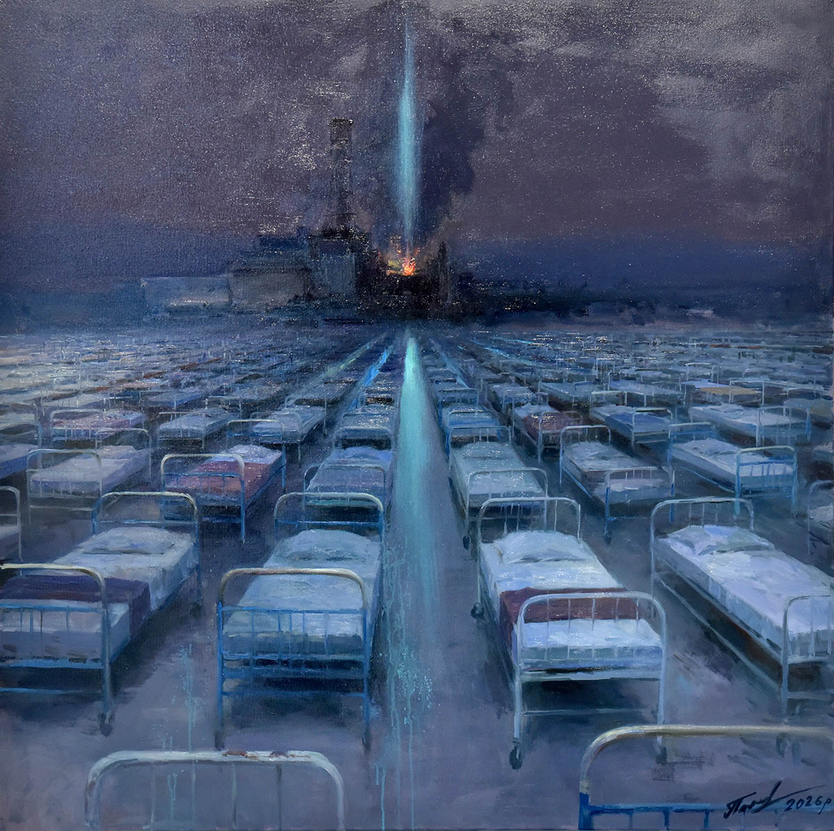 Серед експонатів представлено й роботу 16-річного українського абстракціоніста Данила Ноздрі. Картина “Чорнобильська аварія. Післямова” (2021), виконана акрилом на полотні, повідомив митець у Facebook. Виставка демонструє, як тема катастрофи продовжує залишатися актуальною для нових поколінь художників, які переосмислюють її поза межами історичного наративу.