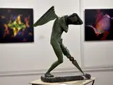 У центрі експозиції — бронзові роботи Ігоря Романовського, створені у власному стилі ROMART, який він розробив після початку своєї творчої діяльності у 1990-х роках. Саме тоді митець уперше привернув увагу мистецької спільноти, перетворивши утилізовану грамплатівку на мистецький об’єкт «Пластомодель». Відтоді художник працює в галузі скульптури та дизайну, поєднуючи експеримент і класичну техніку.