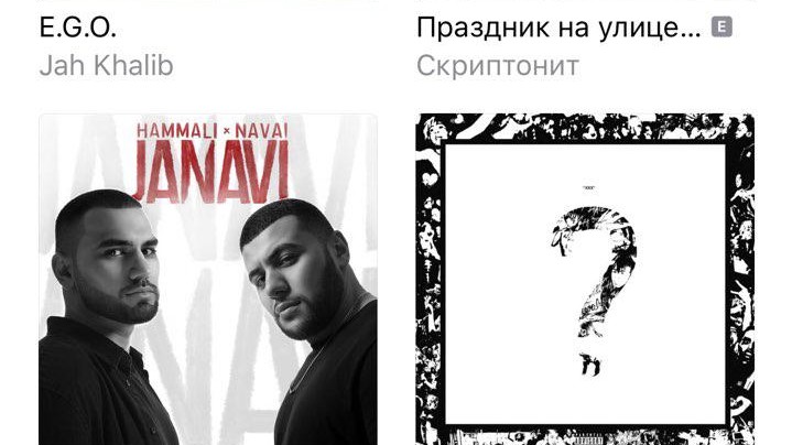Сервіс Apple Music підвів підсумки року і назвав найпопулярніші альбоми в Україні. До списку кращих увійшли, зокрема альбом E. G. O. Jah Khalib, "Праздник на улице 36" гурту "Скриптонит" і "?" репера XXXTENTACION, який був убитий в цьому році.