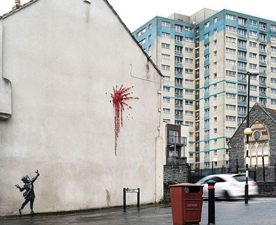 Вуличний художник Бенксі створив у Брістолі у Великій Британії нове графіті, присвячене Дню святого Валентина. На графіті дівчинка стріляє з рогатки і на стіні "розпливається" пляма з червоних квітів. Знімки графіті були опубліковані в офіційному акаунті художника в Instagram.