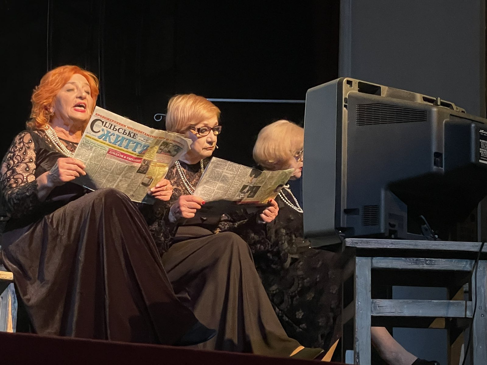 Режисер вводить до своєї інсценізації збірний образ жінок-віщунок, об’єднуючи триєдино пані Шкорупську (Тамара Лаптєва), пані Гордецьку (Вікторія Майстренко) та няньку (Євгенію Миронович). Дуже помітно, як ці актриси насолоджуються своєю грою. Можливо, таке «осучаснення» для них — новий досвід. Поміж душевних перипетій провидиці урочисто зачитують Валуєвський циркуляр 1863 року. Згодом на авансцені, перед тим самим телевізором ці пані імітуватимуть читання газети «Сільські вісті» з яскравим «надзаголовком» — «кровожерливим московитам саміт миру не сподобався». Проте знову віщуватимуть зло.
