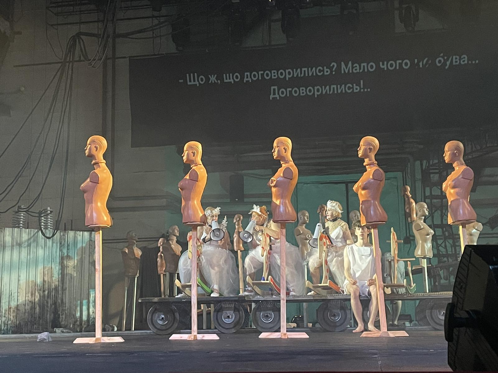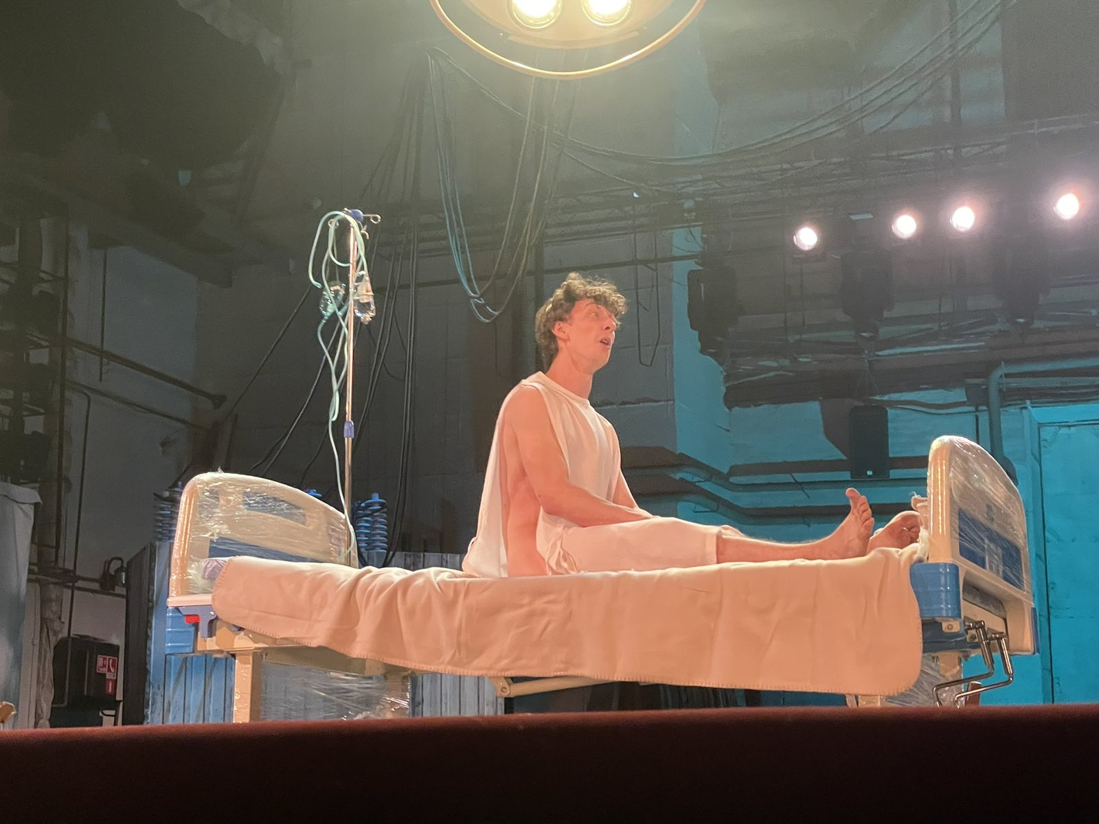 Щодо світла в залі, та й у місті загалом. Тут класика у всій красі — обленерго кошмарить відключеннями так, що під час вистави світло зникало неодноразово. Причому дуже вдало вписувалось у концепцію дійства, так що не було зрозуміло, чи то за графіком, чи за режисерсько-освітлювальним задумом.