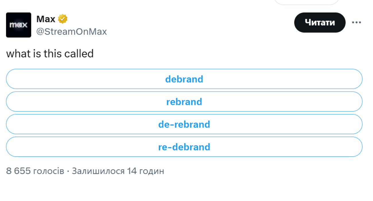 Стрімінговий сервіс Warner Bros. Discovery змінював назви з HBO Go на HBO Now, потім HBO Max, далі Max, а тепер знову HBO Max. Жарти про перейменування компанія почала публікувати ще до виходу офіційного пресрелізу. Тренд підхопили інші користувачі.
