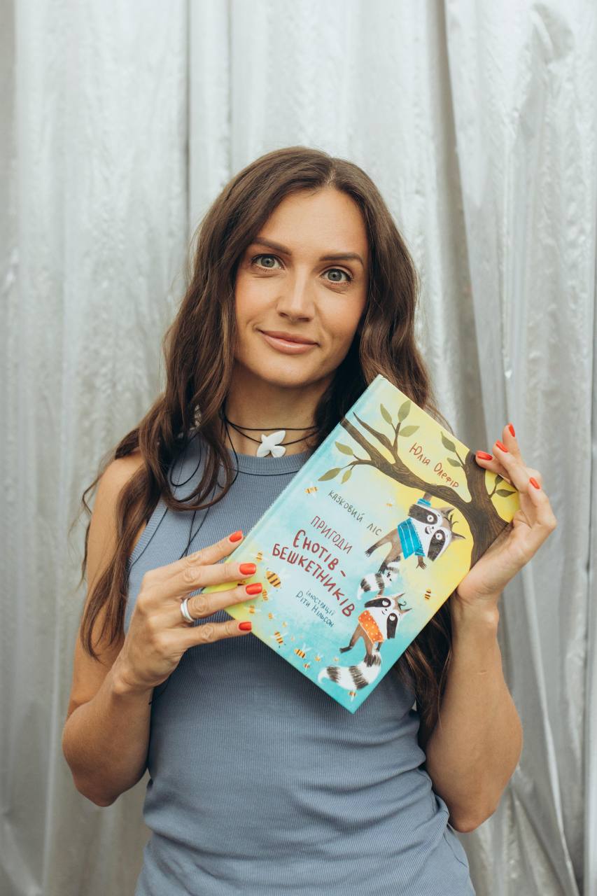 «Не маючи жодної книги українською, я почала читати цю історію старшому сину на ніч. Він був у захваті! І просив продовження. Тож я продовжила вигадувати нові й нові пригоди єнотиків, а син із нетерпінням чекав на наступну частину. Так і зібрався рукопис «Казковий ліс. Пригоди єнотів-бешкетників», — розповідає Юлія.