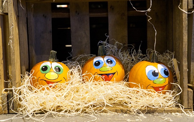 Іноді не обов'язково вирізати гарбуз, щоб надати йому хелловіський вид. Тим більше, якщо ви хочете зробити саморобку з дітьми. В цьому випадку можна скористатися акриловими фарбами і за їх допомогою намалювати гарбузам пики.