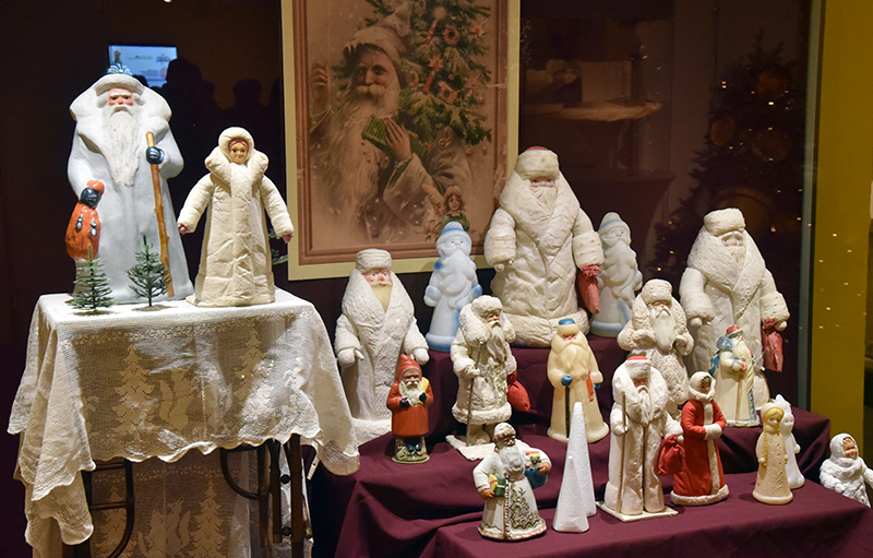 На виставці представлені зразки ялинкових іграшок, що відображають розвиток і модифікацію різдвяних і новорічних прикрас. Старовинні іграшки, фігурки з вати та пап'є-маше, каркасні, прикраси з тонкого скла ручної роботи, гірлянди, картонажні та пластикові іграшки, фабричні скляні іграшки. Найстаріша іграшка датується 1850-тими роками, а наймолодша – минулим роком.