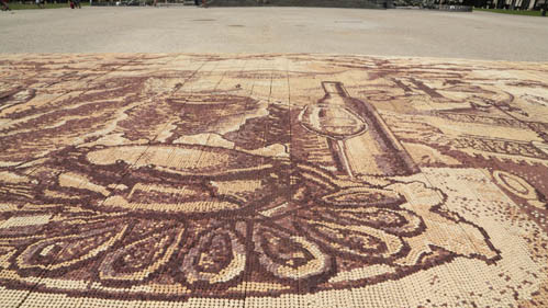 Як повідомляється на офіційному сайті видання, на мозаїці, яку назвали Гігантська бочка, показано давньогрецькі боги, види Санкт-Петербурга і Бордо.