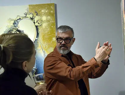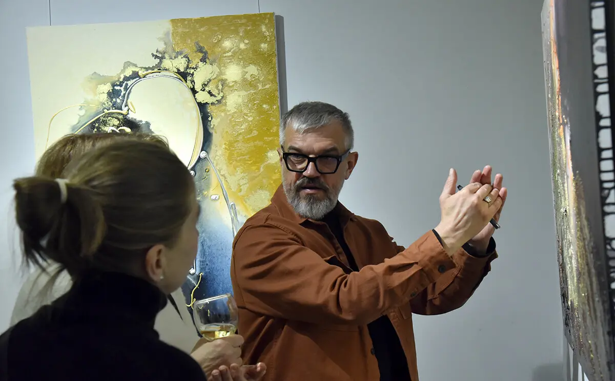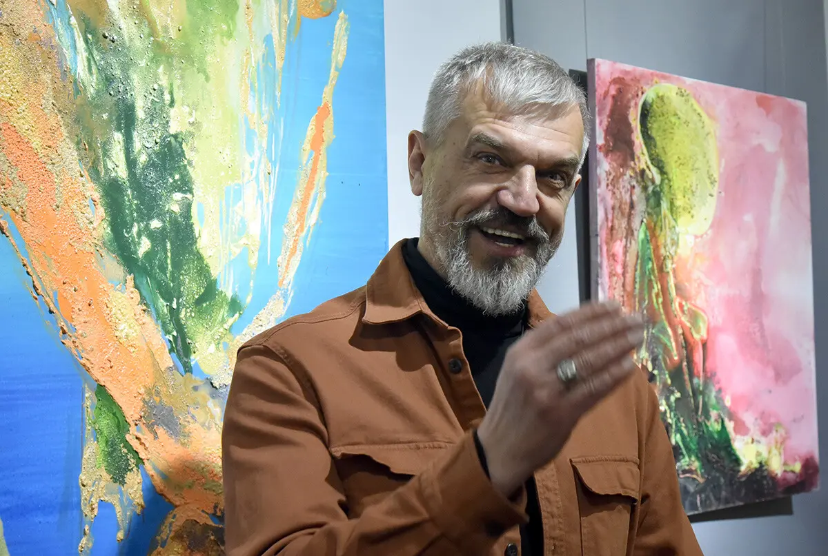 Олександр Янович, знаний київський художник і скульптор, розширює межі абстрактного мистецтва, пропонуючи новий погляд на динаміку форми та кольору. Його полотна балансують між хаосом і гармонією, передаючи емоції через текстури, контрасти і світлотіньові взаємодії.