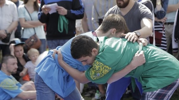 Більше сотні переселенців з Криму, які зараз проживають в Києві, зібралися разом у парку "Нивки". На святі кримські татари влаштували змагання з національної боротьби - куреш, провели національні обряди, а також приготували традиційні страви.