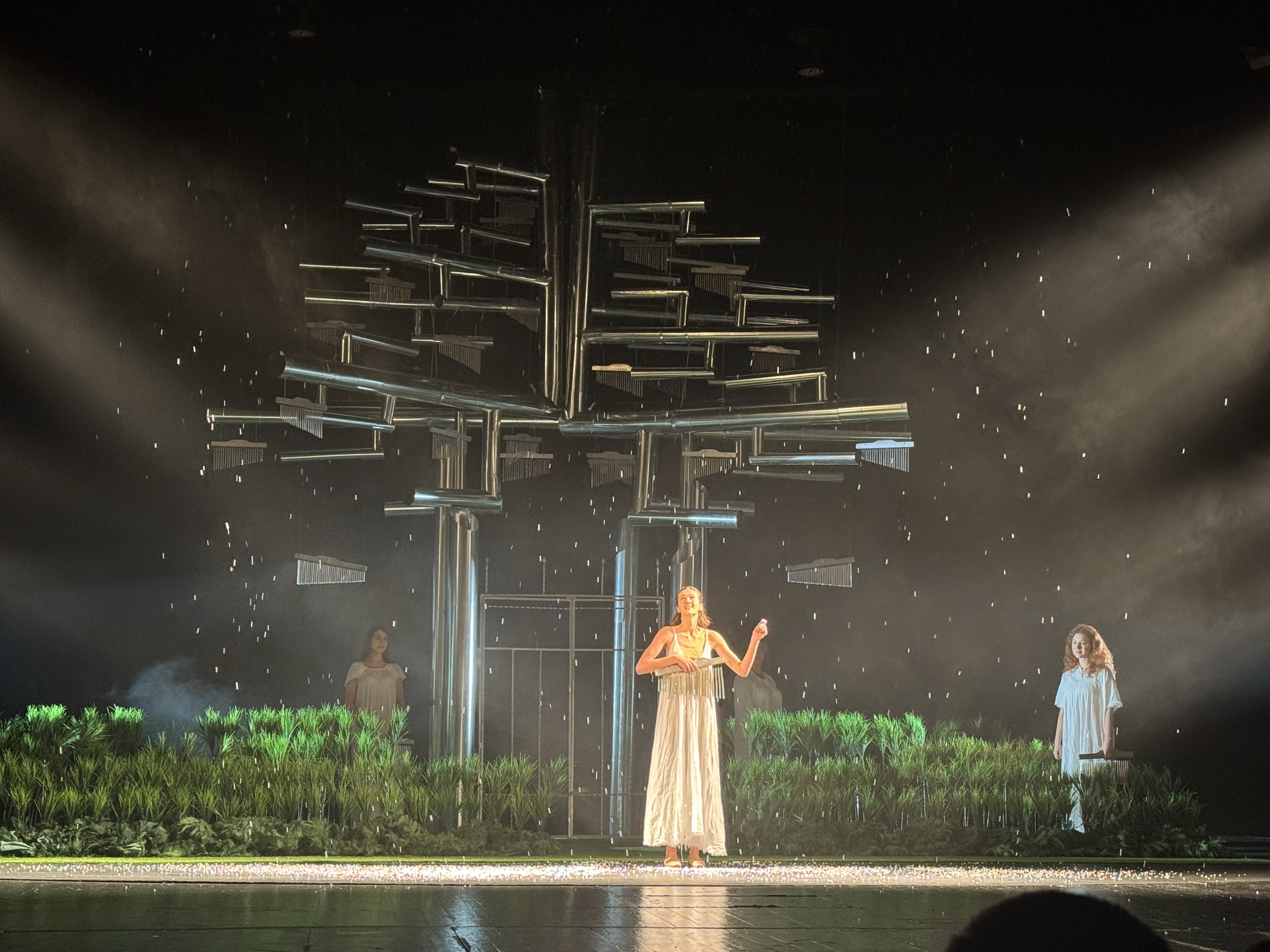 15 жовтня 2025 року, хол театру. Лунає жива музика у виконанні театрального оркестру, заздалегідь підготовлено фотозони у вигляді банера «НАМ 100!» і локації, де можна приміряти сценічні костюми й навіть перуки (захопливий і цікавий досвід, раджу). Поруч стенд із сувенірними чашками, печивом та іншою продукцією. Усе до ювілею. Багато глядачів із осінніми квітами. Оркестр від класики переходить до сучасніших мелодій, хтось із присутніх підспівує. Загальний позитивний настрій перебиває клятий ворог — до початку вистави лунає повітряна тривога. Триває вона довго, й художній керівник театру повідомляє, що прем’єрний показ, як і відкриття 100-го сезону, переносяться на наступний день.