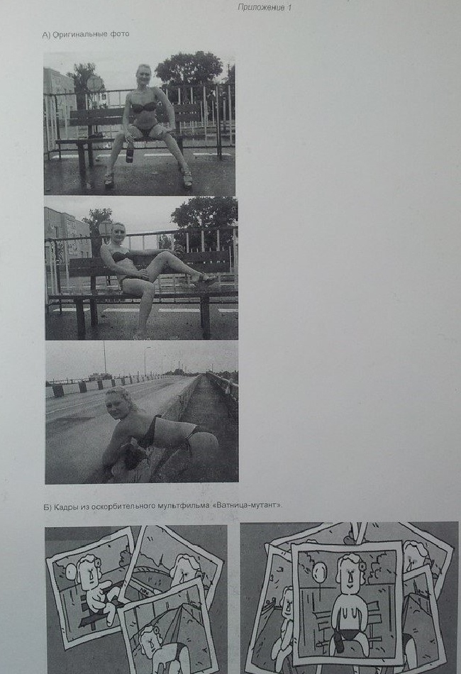 "У мультфільмі ...були показані фото із зображенням мене, що нібито позую на тлі мосту з пляшкою шампанського. При цьому в принизливій формі повідомлялося, що я окультурила не одного громадянина в трусах і з цицьками навпереваги", - зокрема йдеться у зверненні.
