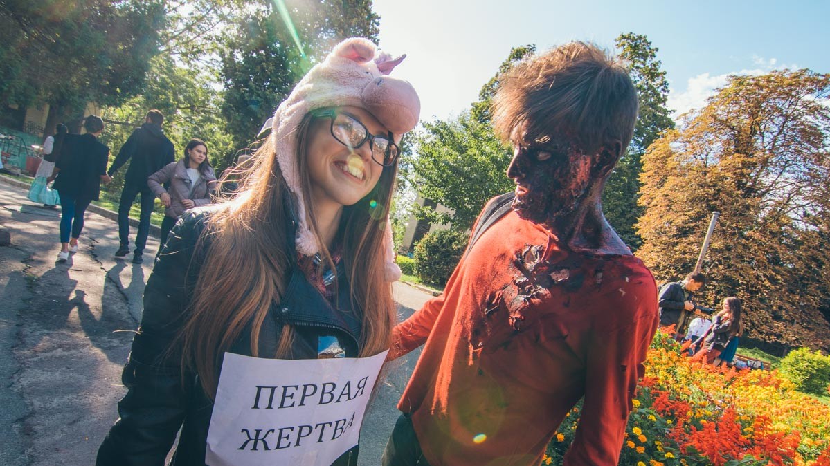 У центрі Києва натовп зомбі вивалилася з ботанічного саду імені Фоміна, і волаючи "Мізки!", пішов захоплювати місто. На старті зомбі-параду зібралися близько 60 юнаків та дівчат в лякаючому гримі і з усіма належними аксесуарами, вони зображали персонажів фільмів жахів: зомбі, некромантів, кривавих черниць і навіть саму смерть. Деякі зображали військових, які повинні були безуспішно захищати мирних громадян від навали ожилих мерців.