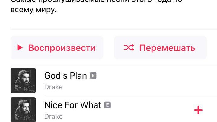 Сервіс Apple Music підвів підсумки року і назвав найпопулярніші пісні у світі. Найпопулярнішою піснею року стала композиція God's Plan канадського репера Дрейка, який в цьому році був визнаний артистом року за версією сервісу.
