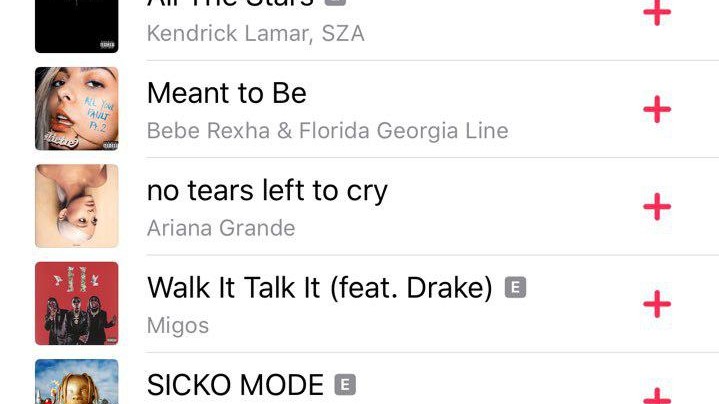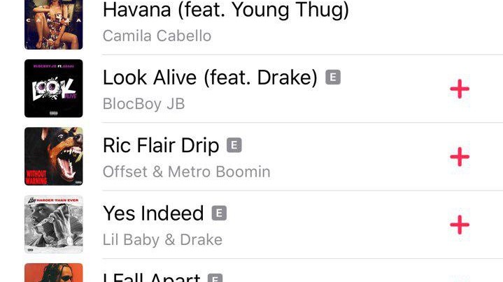 У Топ-10 пісень у світі потрапили також I like it Cardi B Bad Bunny & J Balvin, SAD! XXXTENTACION, Havana Камілли Кабелло, Look alive BlocBoy і Ric Flair Drip Offset &Merto Boomin.