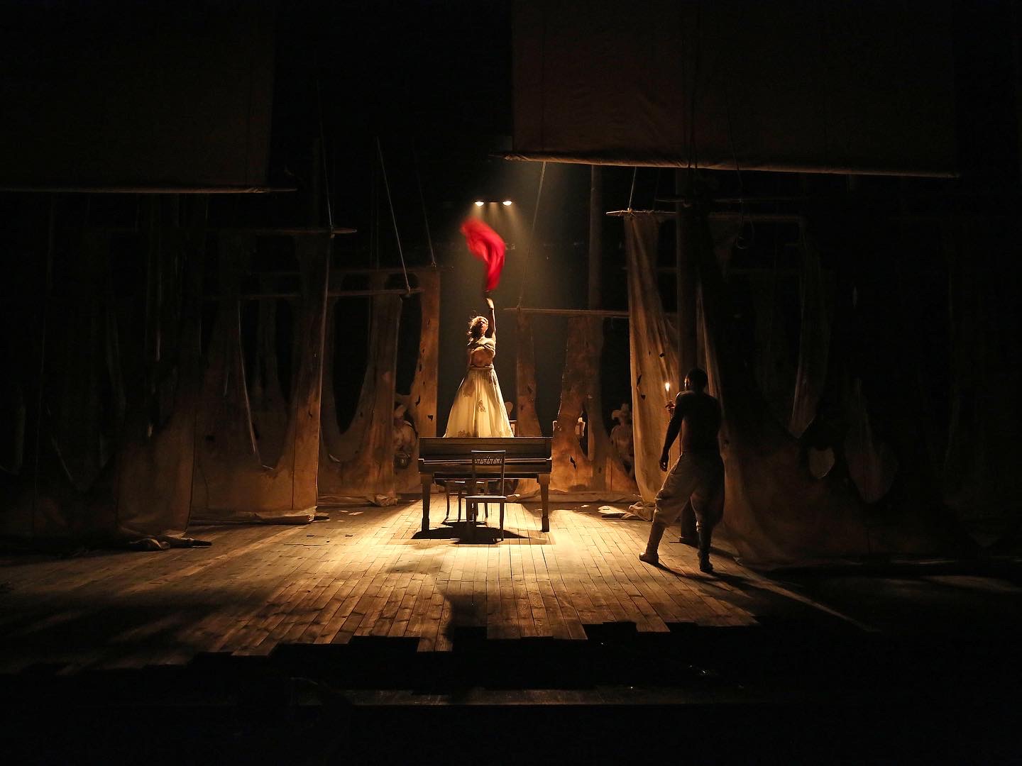 Для керування кораблем епохи Шекспіра, мабуть, потрібні були б весла. Через кілька століть буде винайдено більш удосконалений механізм — штурвал. На кораблі Отелло у наші невизначено казкові часи на місці того, що направляє корабель, — рояль. Відразу і примусово відкидаються думки про тригерні моменти нашої історії, коли весела гра на піаніно (хоча тут не рояль, але яка вже різниця) призводить до реального штурвалу влади. Думаю, що цей громіздкий центральний музичний символ-реквізит однаково викликатиме непорозуміння та бажання його виправдати. Інакше навіщо Отелло, позбавивши свою Дездемону життя, бережно кладе її під відкриту кришку того ж рояля.