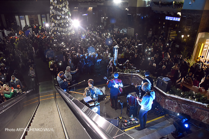 В п'ятницю, 30 грудня, в Києві, на Центральному залізничному вокзалі відбувся майже півторагодинний унікальний концерт Олега Скрипки та гурту "Воплі Відоплясова". Виступ відбувся у вестибюлі вокзалу, на сходах біля ескалаторів.
