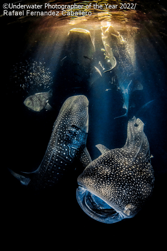 Знімок Фернандеса Кабальєро, який отримав нагороду, був зроблений на Мальдівах, на ньому зображено групу китових акул, що припливли на вогні його човна, щоб поласувати нічним планктоном.