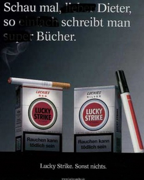 Претензії Болена до тютюнового концерну British American Tobacco, якому належить бренд Lucky Strike, були пов'язані з появою в Німеччині рекламних плакатів. Деякі слова у слогані на плакатах були замазані. Композитор вважав це натяком на його скандальну автобіографічну книгу "За лаштунками". При цьому музикант виступив проти, щоб без його дозволу на його імені наживався тютюновий концерн.
