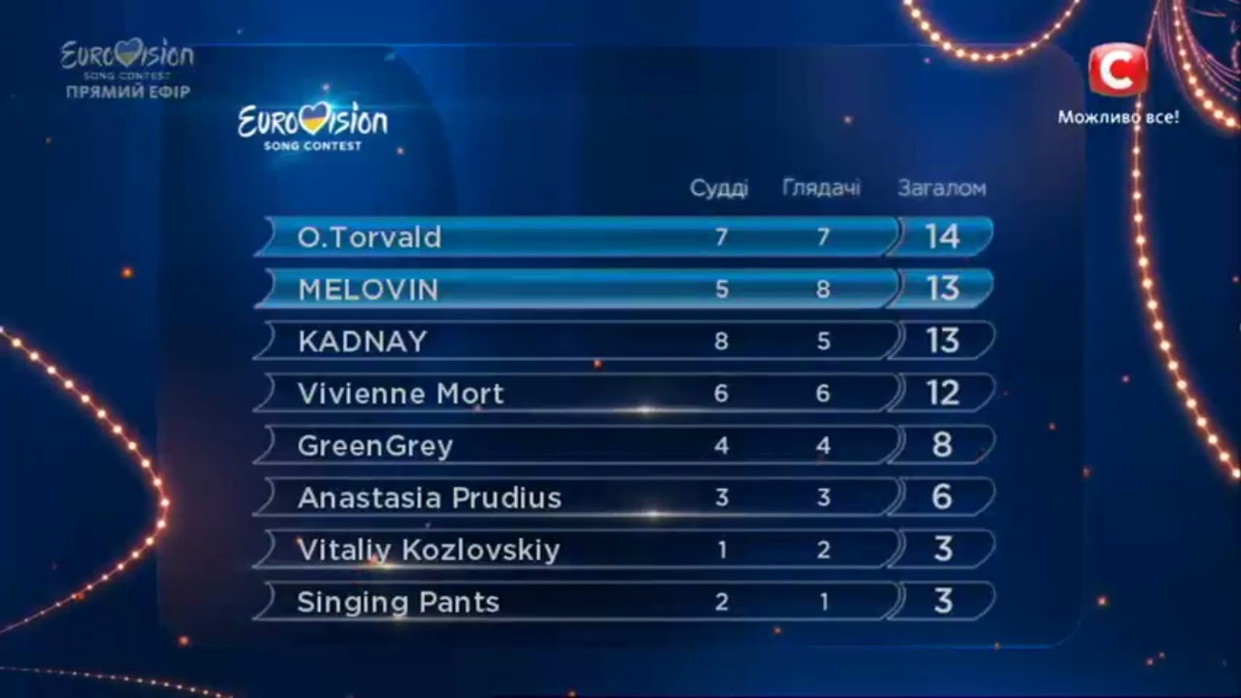 В результаті у фінал вийшли O. Torvald (14 балів) та MELOVIN (13 балів). Варто відзначити, що гурт KADNAY також отримав 13 балів, але оскільки MELOVIN отримав більш високу оцінку глядачів, саме він виходить у фінал.