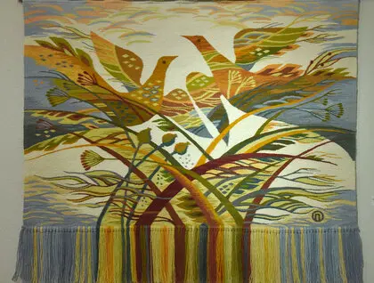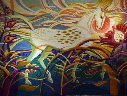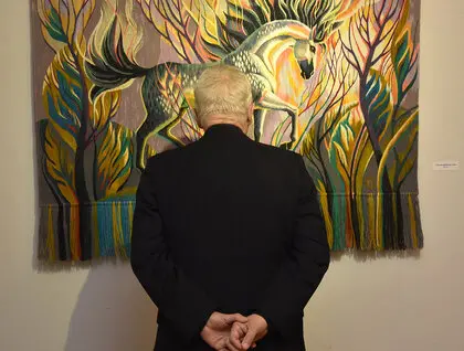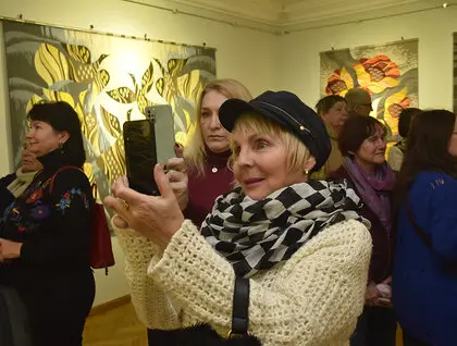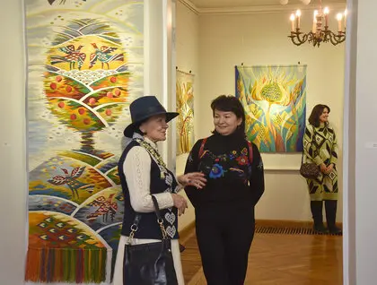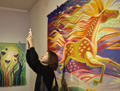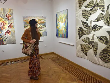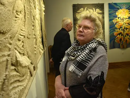 У Києві в Музеї діаспори відкрилася виставка гобеленів Ольги Пілюгіної «Мета». Фотокореспондент ZN.UA Василь Артюшенко показав фото робіт мисткині.