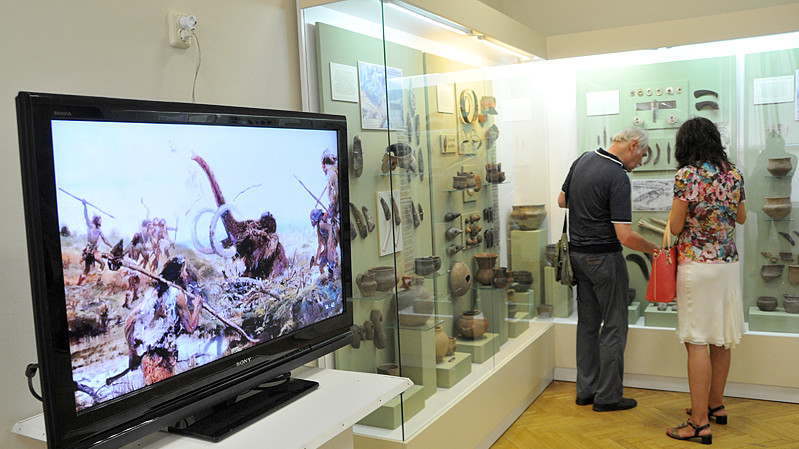 У Києві в Національному музеї історії України відкрилася виставка "Мистецтво мисливців на мамонтів", на якій представлені оригінали людських виробів доби палеоліту. Серед експонатів десять унікальних виробів з кістки та бивня мамонта - мистецькі твори ранньої кам'яної доби, знайдені археологами в Україні на двох стоянках мисливців на мамонтів: Мізинській у Чернігівській області та Кирилівській у Києві. Особливо цікавий браслет з бивня мамонта, прикрашений одним із найдавніших зображень меандрового візерунку, а також стилізованими жіночими фігурками - "пташечками", що прикрашені геометричним орнаментом. Ці пам'ятки є надзвичайно цінними і потребують особливих умов зберігання через свою вразливість. Зокрема, браслет з меандровим візерунком зібраний з понад тридцяти фрагментів. Востаннє ці вироби експонували у 2004-2005 роках на виставці у Національному природничому музеї Франції. Обов'язковою умовою експонування, завдяки якій Україна тоді погодилася надати Франції свої пам'ятки, було створення їхніх копій у всесвітньо відомій реставраційній майстерні Лувру. Саме ці копії і представлені у постійній музейній експозиції. Але до кінця червня у гостей музею буде можливість побачити на власні очі пам'ятки мистецтва, деяким з них вже близько 20 тисяч років.