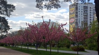 "У Києві зацвіла найдовша алея сакур. Вона має довжину 988 метрів і була занесена в Книгу рекордів Гіннеса у 2012 році", - йдеться у повідомленні на сторінці парку в Facebooк.