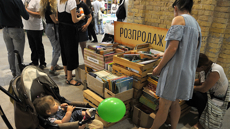 Чимало відвідувачів стоять у черзі, щоб придбати літературні новинки та почути улюблених авторів.