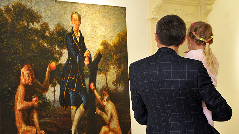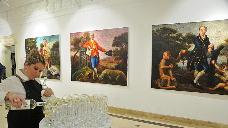 Проект Олександра Ройтбурда "Галантна доба Просвітництва", який експонується в ART GALLERY називають найабсурднішою і найглибшою виставкою цієї осені. У проекті представлена серія псевдоісторичних іронічних полотен, портретів-пейзажів, що зображають видатних мислителів минулого від Декарта і Сковороди до Шопенгауера і Троцького.