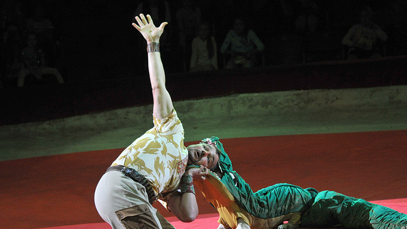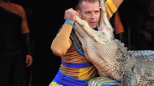 Любителям екзотики сподобається номер дресирувальника Олександра Орлова – артист працює з величезними нільськими крокодилами і на арені кладе голову в щелепу зубастому чудовиську.