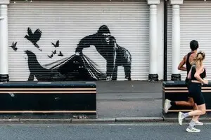 Минулого літа художник створив серію з дев’яти робіт у Лондоні, об’єднаних темою тварин. Кампанія завершилася зображенням горили, що піднімала віконницю на вході до Лондонського зоопарку.