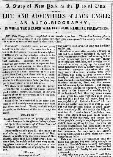 "Життя і пригоди Джека Енгла" розповідає про адвоката-сироту, який намагається обдурити свого клієнта з метою заволодіти його статками. Імовірно, історія була заснована на ситуації з минулого Вітмена, оскільки його батько був обманутий адвокатом.