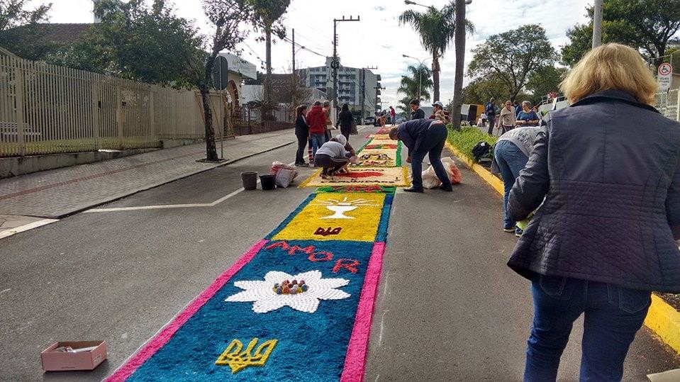 "Після Трійці католики Бразилії відзначають Свято Тіла і Крові Христових. Українська громада міста Касадор штату Санта Катаріна в традиційних килимах з тирси, прикрасили вулиці міста, не забула про Україну. Спасибі всім представникам діаспори за ці вироби народного мистецтва і за прояв солідарності з Україною і нашим народом!" - йдеться в повідомленні.