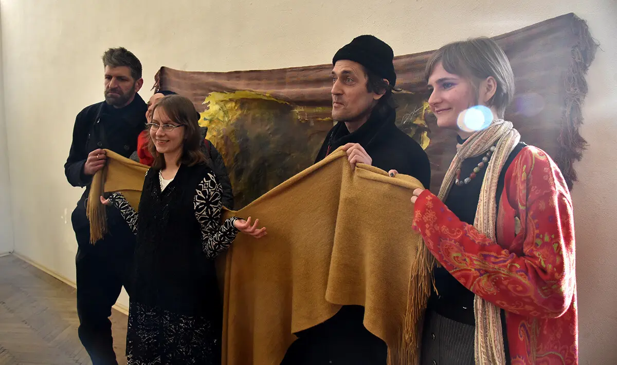 Відкриття виставки супроводжувалося символічним перформансом безпосередньо на місці зруйнованої споруди академії.