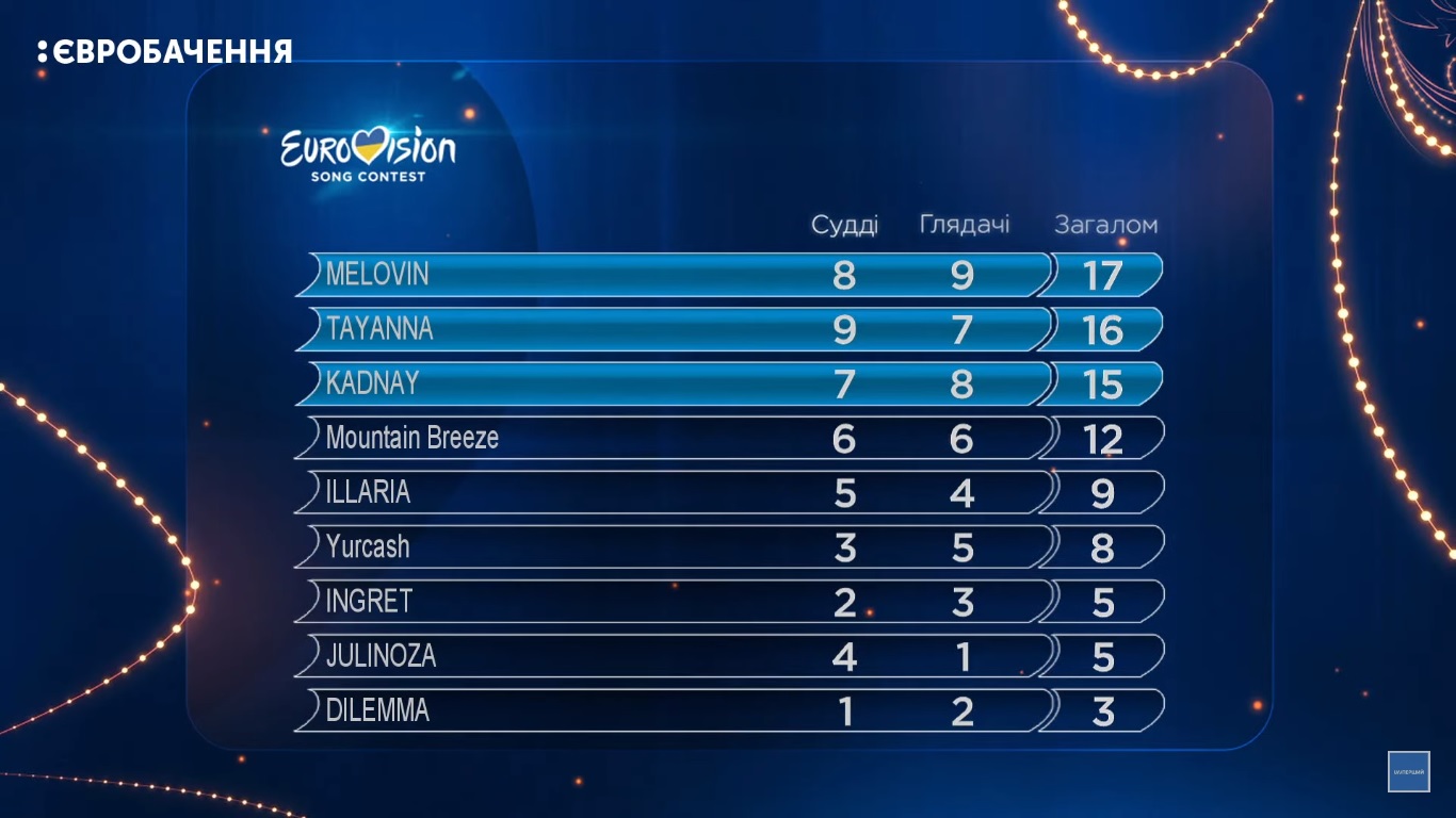 Таким чином, у фінал конкурсу вийшли MELOVIN (17 балів), TAYANNA (16 балів) та KADNAY (15 балів).