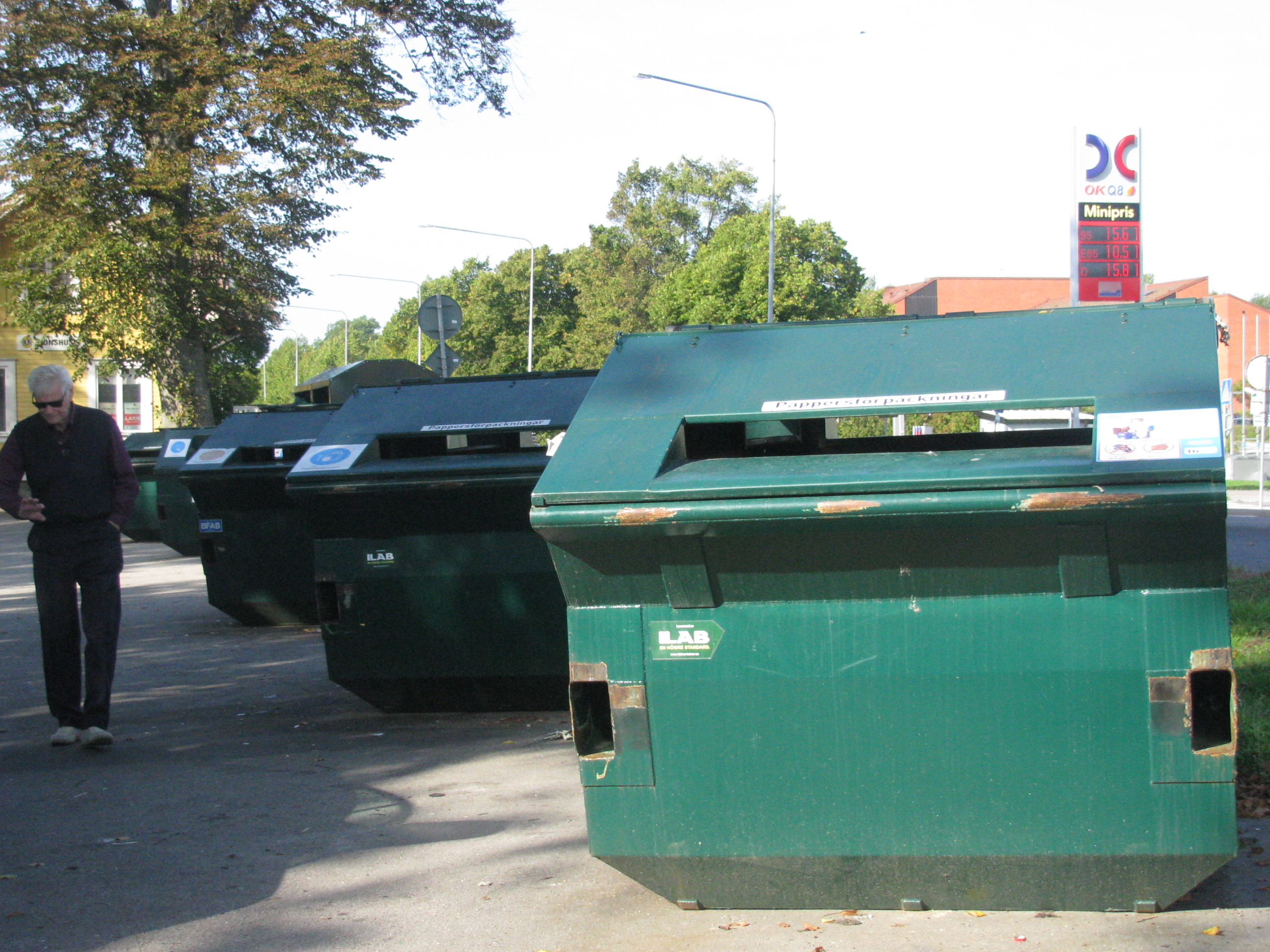 Крім паперового, у шведському домі, зазвичай на кухні, є простий пластиковий пакет для неорганічного сміття. Також окремо збирають скло й харчову жерсть. Перш ніж викинути банки та пляшки миють і звільняють від етикеток. Миють і паперову упаковку з-під молочних продуктів та соків. При цьому пластмасові кришки від них ідуть у пакет для неорганічних відходів. Таким чином, у будинку є кілька ємностей для різного сміття. Викинути його можна й у великі контейнери, що стоять на майданчиках у затишних куточках міста. Деякі види сміття тільки там і збирають.