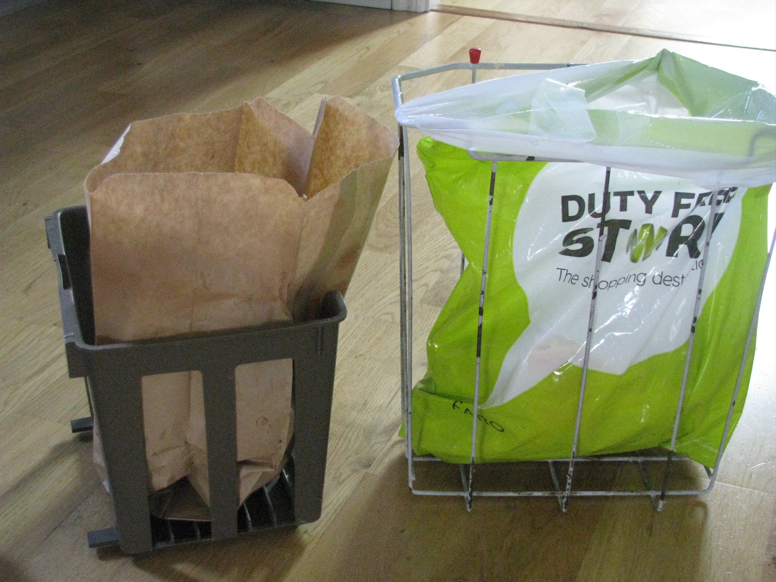 Як і весь світ, Швеція стурбована засиллям поліетиленових пакетів і бореться проти всілякої пластикової упаковки. Але в самій країні не завжди для збору сміття використовувався папір. Принаймні ще півтора десятка років тому харчові відходи збирали в поліетиленові пакети. Пам'ятаю це точно завдяки одному курйозному випадку. Одного разу Біргітта, лаштуючись на роботу (вона була медсестрою в місцевій клініці), похапцем викинула в контейнер свій бутерброд для кава-паузи, а такий самий пакет із відходами взяла з собою.