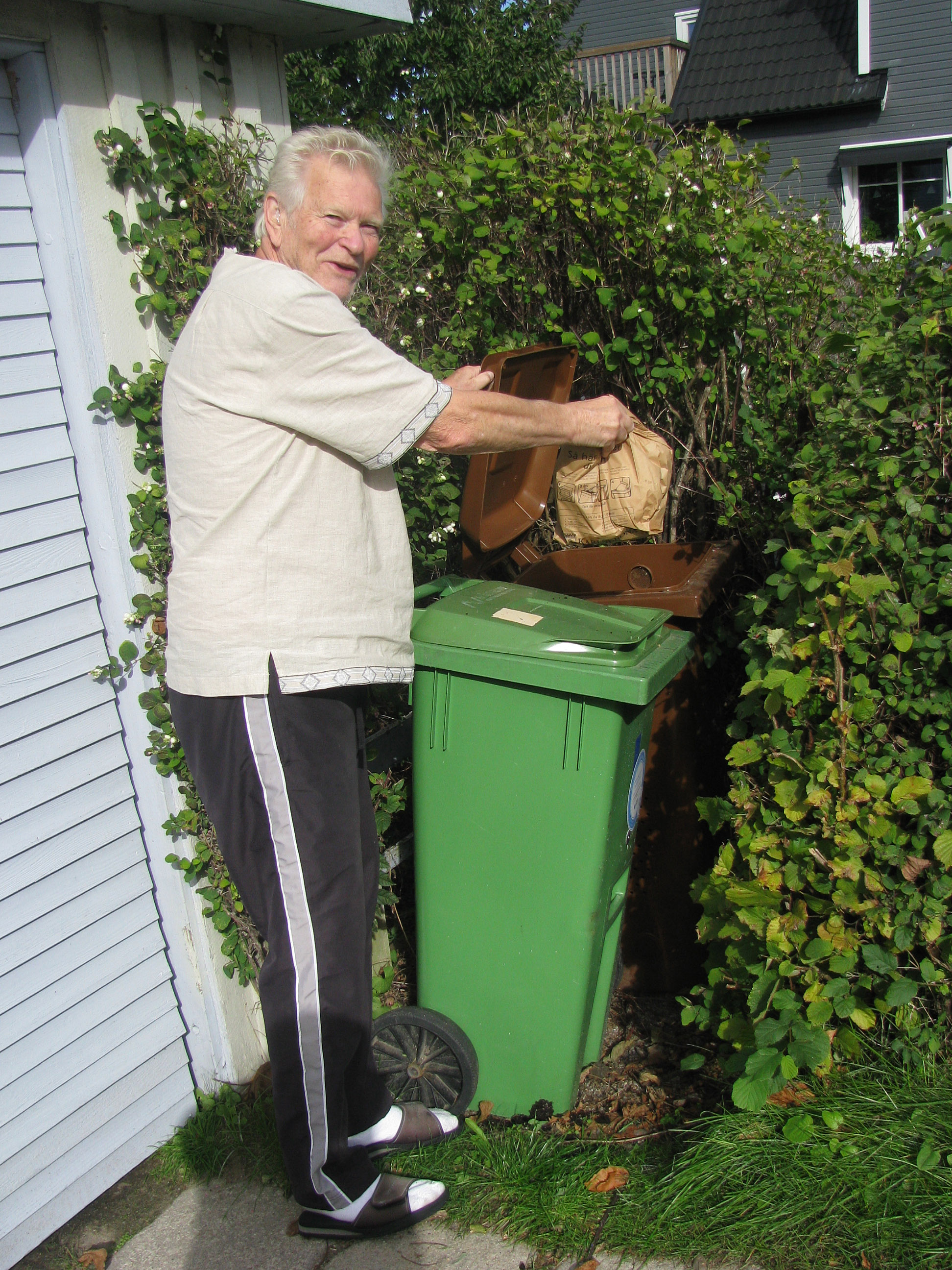 Проте просвітницько-виховна робота не слабшає. Так, викидаючи харчові відходи, людина щоразу бачить інструкцію про те, як це робити. На паперовому пакеті в картинках і текстових коментарях розповідається, як користуватися самим пакетом і що в нього поміщувати (рештки їжі, рибні та м'ясні кістки, відходи овочів і фруктів, хліб та випічку, попкорн і шоколад, кавову й чайну заварку, паперові фільтри і серветки, квіти). Все це викидають у коричневий контейнер, який стоїть у дворі. Інший контейнер пофарбований у зелений колір, він призначений для неорганічних відходів. Коли контейнери наповнюються, господарі виставляють їх ближче до дороги. Сміття забирає комунальна машина, що проїжджає по п'ятницях. Натомість на бачку залишають нові паперові пакети. А на них, між іншим, крім правил використання, є й подяка від імені місцевої комуни за правильно викинуті відходи.