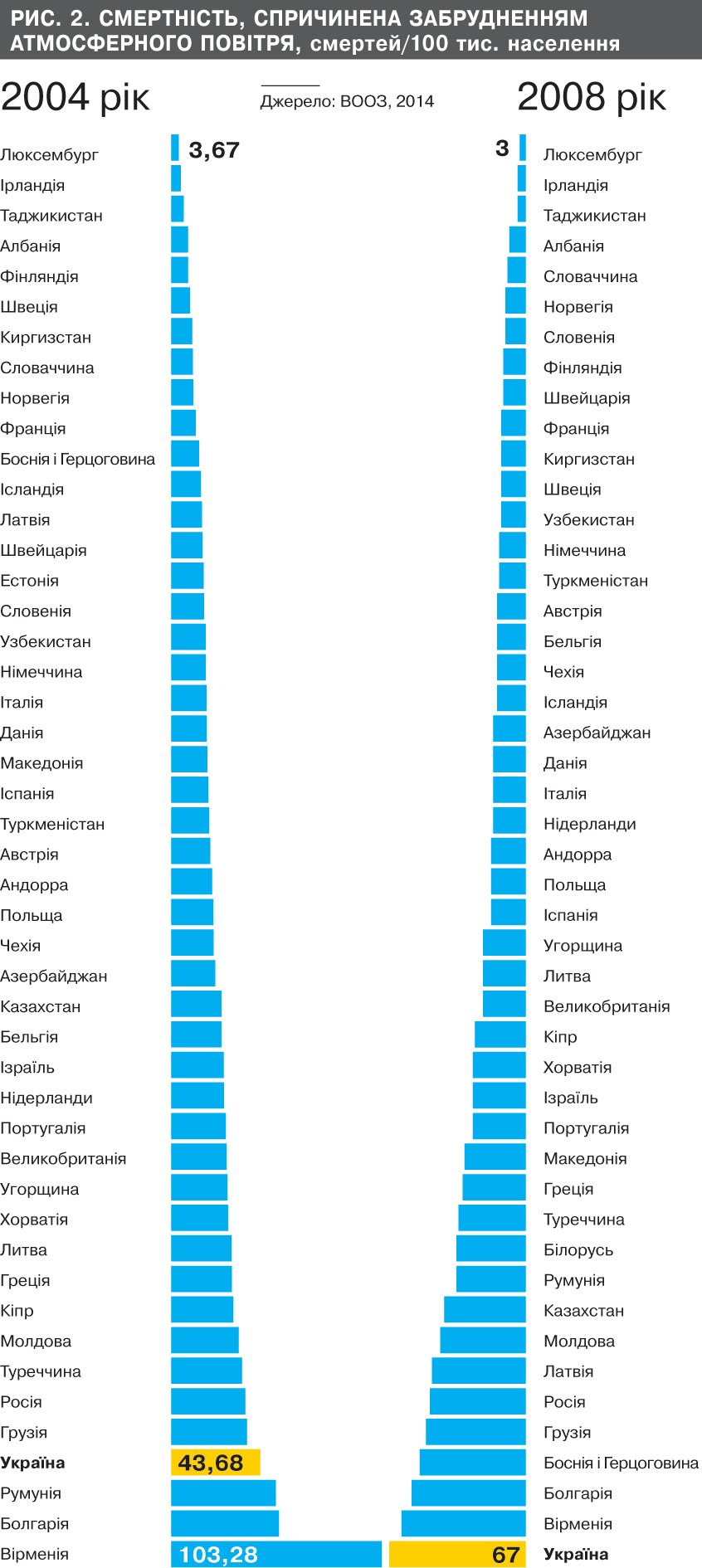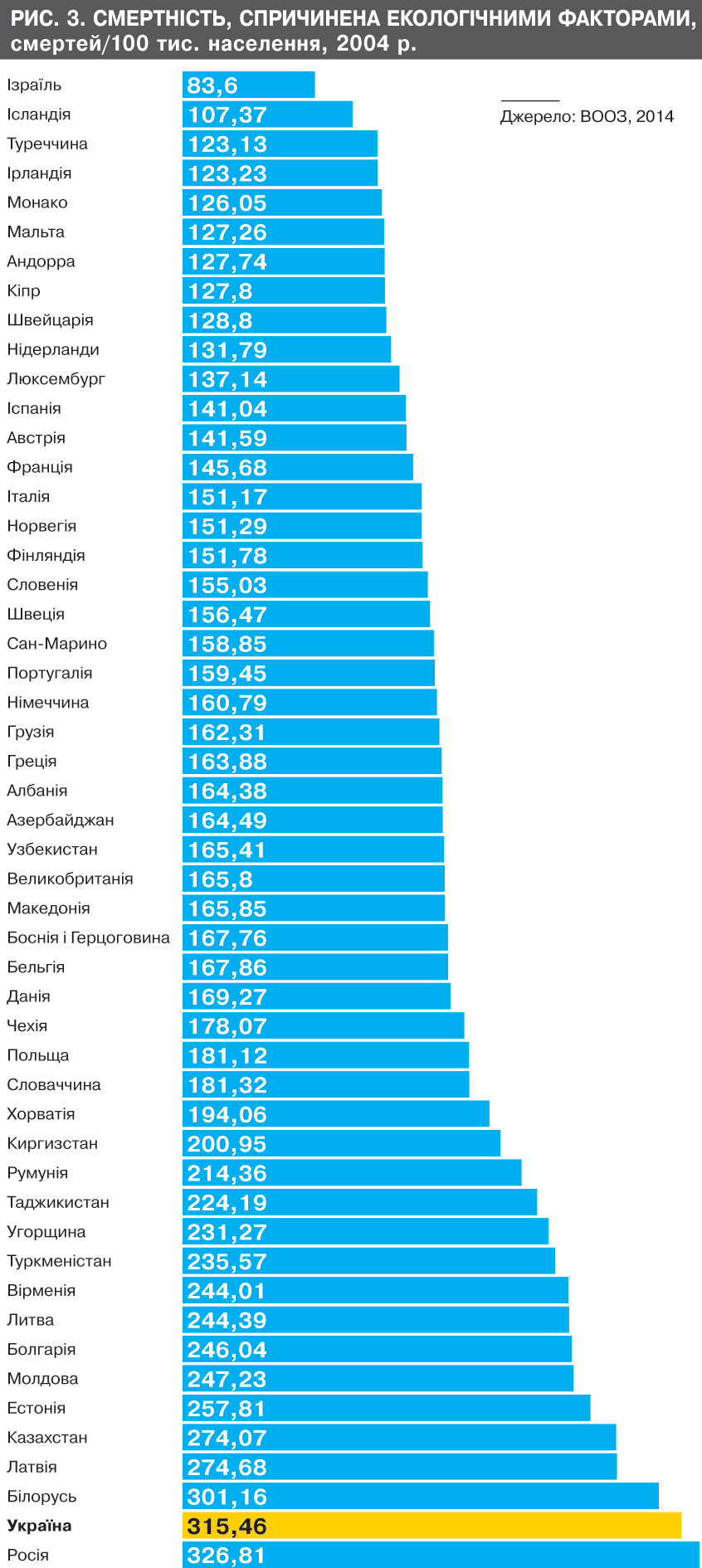 Прагнення держави забезпечити задоволення базових потреб населення без стратегії подальшого розвитку веде до створення другосортного суспільства. Суспільства, в якому тривалість життя людей скорочуватиметься за рахунок зростання великого капіталу. Суспільства з найвищим у регіоні рівнем смертності, викликаної забрудненням атмосферного повітря (див. рис. 2) та передостаннім місцем за рівнем смертності, викликаної екологічними факторами загалом (див. рис. 3).