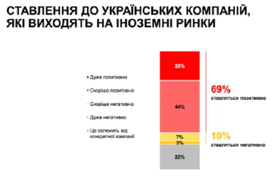 31% вважає, що масштабування українських компаній на іноземних ринках сприятиме кращому ставленню іноземців до України. 30% опитуваних впевнені, що українці будуть більше пишатись собою завдяки успіхам вітчизняного бізнесу.