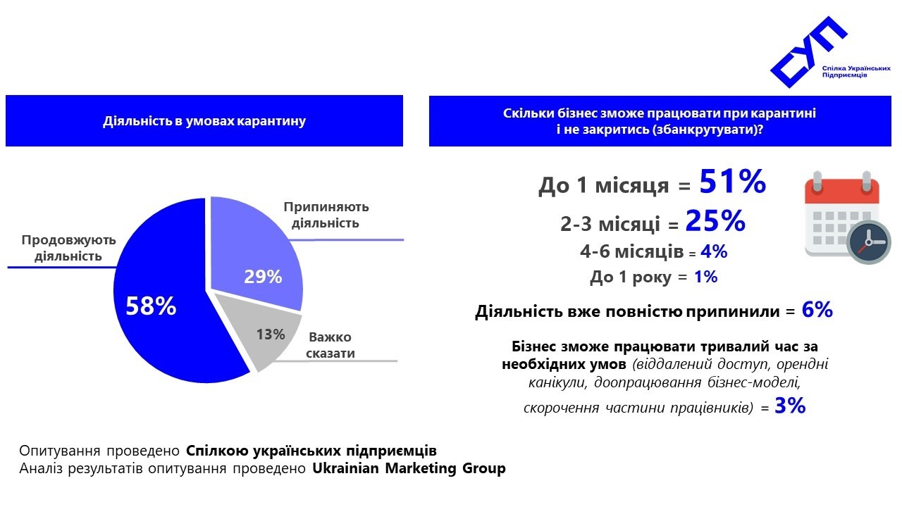 51% підприємств здатні протриматися всього 1 місяць, а кожен четвертий бізнес - витримати 2-3 місяці роботи в умовах карантину і не збанкрутувати.
