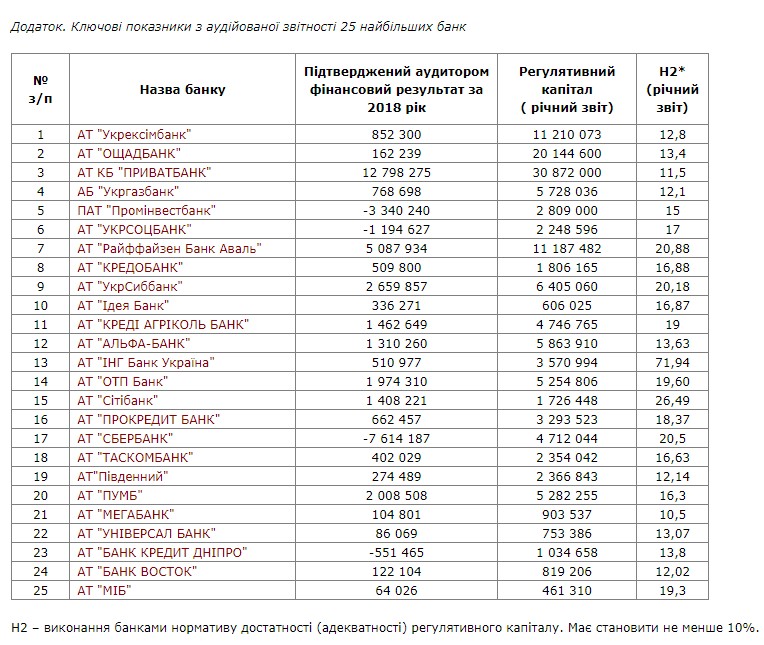 При цьому в окремих банках, які входять до 25 найбільших за часткою активів банківського сектора, аудитори зробили свої доповнення.