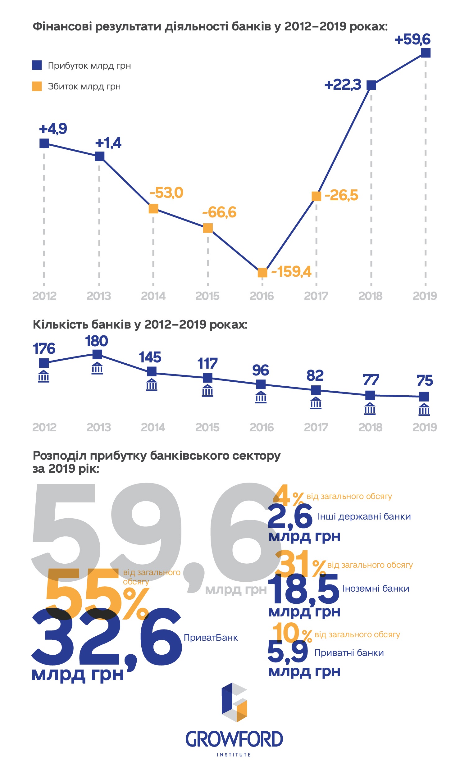 У 2019 році банки України досягли найвищого рівні прибутковості за всю історії банківської системи країни – прибуток сягнув 59,6 млрд грн. Про це свідчить аналіз від GROWFORD Institute.
